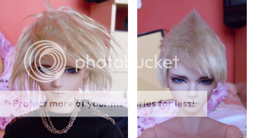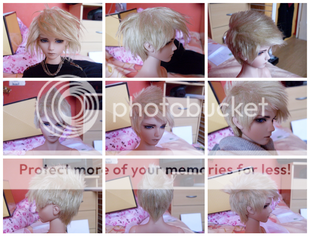 Így majdnem egy év után, felupolódott Wayne dobozbontós témája DD-n és én visszanéztem, elolvasgattam a kommenteket. És rájöttem, hogy szegényről alig csináltam normális képeket, vagy amit csináltam azon se úgy néz ki, ahogy kéne. Ennek pedig az az oka, hogy nincs normális fiús haja, mert nem árulnak olyat sehol. >.< Az Akasarushi-s szőke is túl animés, meg túl hosszú. Körbenéztem, hogy hol árulnak rövid hajakat, de nemigazán találtam, meg nem is akartam rá hónapokat várni, amíg megjön. Úgyhogy felhasználtam Alvin régi haját, ami mondjuk nagy volt rá, de bentebb vettem belőle, és megnyírtam. Még az árnyalata is jobb, az Aka-s túl sárga.
